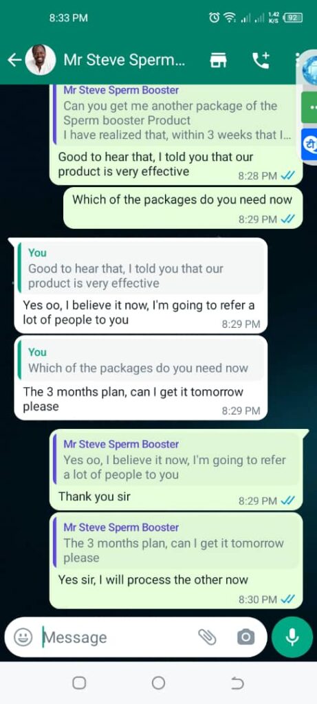 This is the product that, after consistent use, helps improve male fertility and increases the chances of conception within a short period of time. Many men are already using this product and seeing positive results.